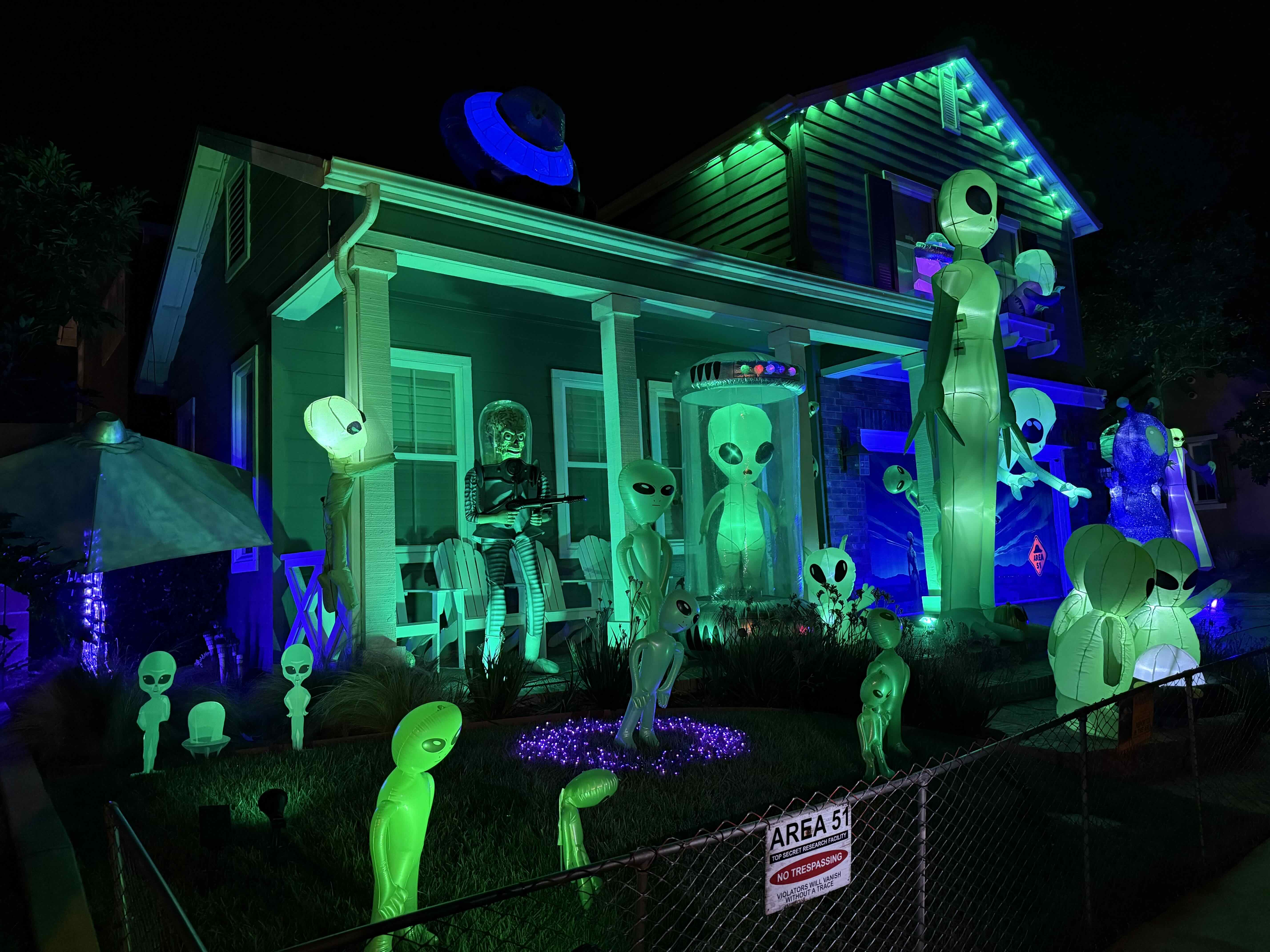 Come see the Allen's Aliens at Ladera's own Area 51! Our out of this world display is up nightly between 6:30pm and 9:30pm with surprise alien visitors from time to time. Follow us on Instagram @ladarea51 for more!